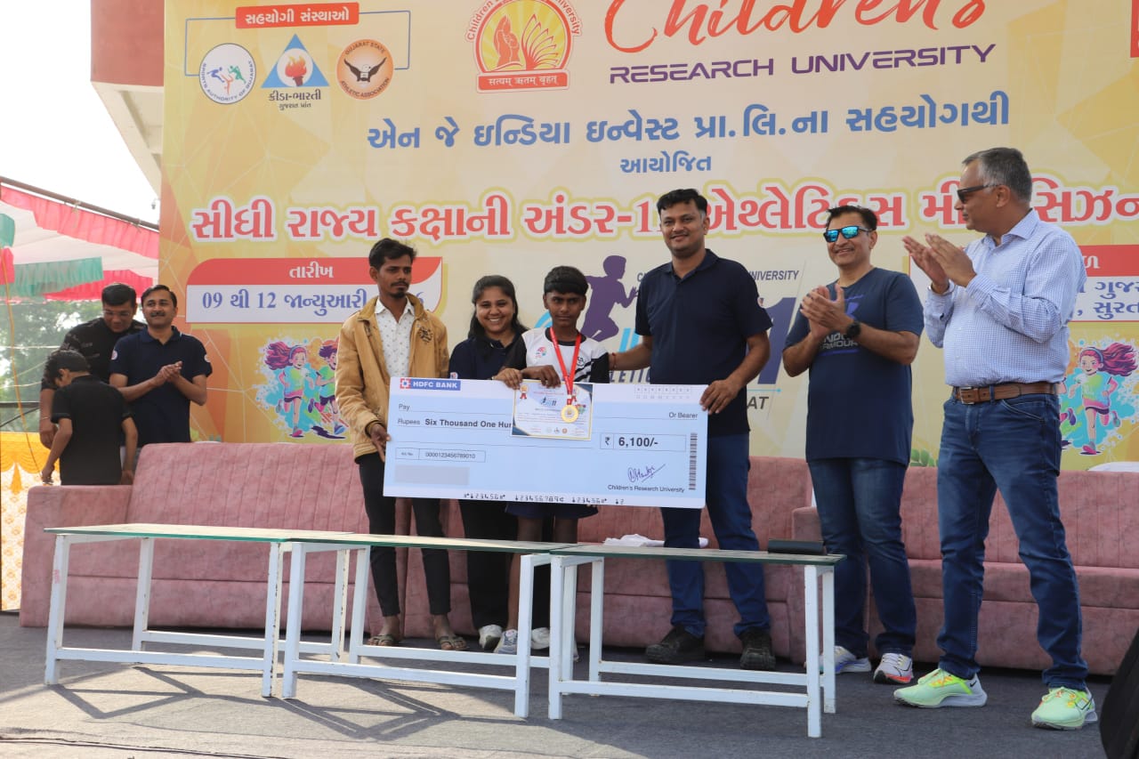 ~એન.જે. ગ્રૂપના સહયોગથી ચિલ્ડ્રન્સ રિસર્ચ યુનિવર્સિટી દ્વારા આયોજિત અંડર-11 એથ્લેટિક્સ મીટ આયોજિત